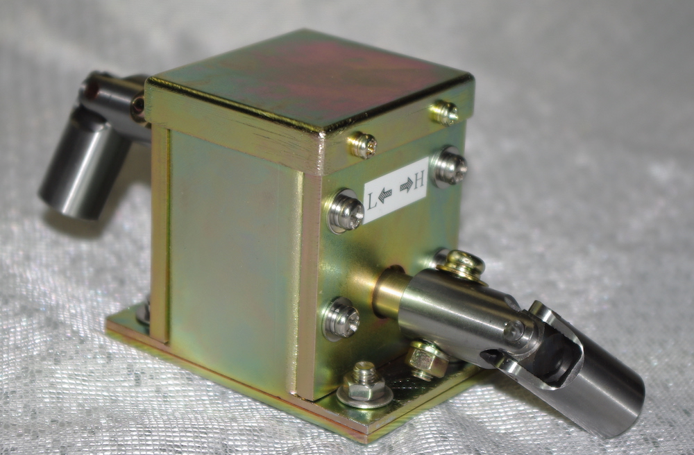スロットルハンドルの回転方向を逆転させる装置です。 左右のスロットルハンドルの回転方向を同じ向きに揃えることが出来ます。 スロットルのシャフトの間に取り付けて使用します。 小型ですので、取付が容易です。